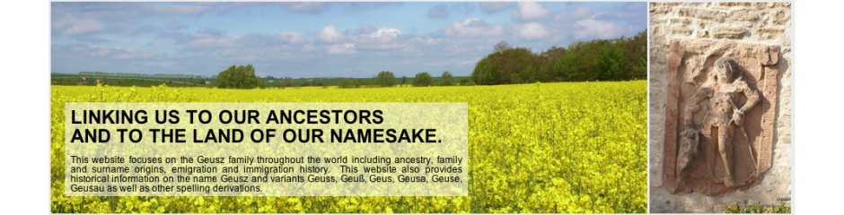 This website focuses on the Geusz family throughout the world including ancestry, family and surname origins, emigration and immigration history. This website also provides historical information on the name Geusz and variants Geuss, Geuß, Geus, Geusa, Geuse, Geusau as well as other spelling derivations.